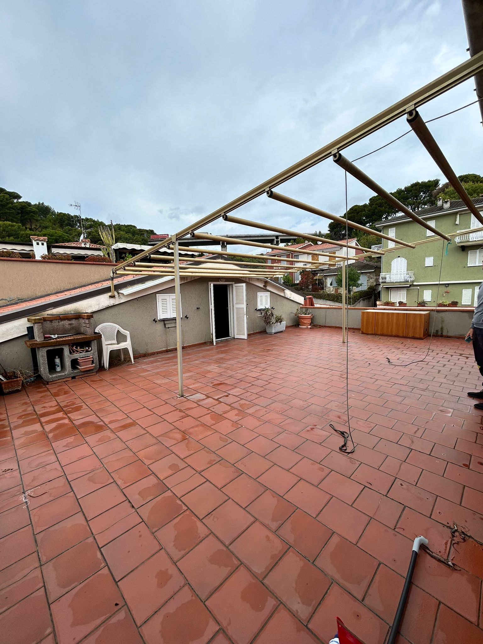 A soli 700 metri dalle spiagge, proponiamo in vendita una soluzione unica nel suo genere, perfetta per chi sogna il mare a pochi passi e ampi spazi all’aperto. L’appartamento si trova al secondo ed ultimo piano di una piccola palazzina, senza ascensore, e conquista fin da subito per il suo splendido terrazzo di circa 60 mq, ideale per pranzi all’aperto, momenti di relax e serate sotto le stelle. L’abitazione si apre su un luminoso ambiente monocamera con cucina a vista, funzionale e accogliente, oltre a bagno finestrato. Dal terrazzo si accede a un sottotetto di circa 50 mq, un valore aggiunto di grande potenziale: la pratica per renderlo abitabile è già avviata e manca solo l’ultimazione, permettendo di ricavare ulteriori spazi personalizzabili secondo le proprie esigenze. Punti di forza: .Vicinanza al mare .Ultimo piano .Ampissimo terrazzo vivibile .Sottotetto con possibilità di ampliamento .Ideale come casa vacanze o investimento Una proposta rara, perfetta per chi cerca indipendenza, spazio esterno e la possibilità di valorizzare l’immobile nel tempo. Contattaci per maggiori informazioni o per fissare una visita: questa opportunità merita di essere scoperta dal vivo!